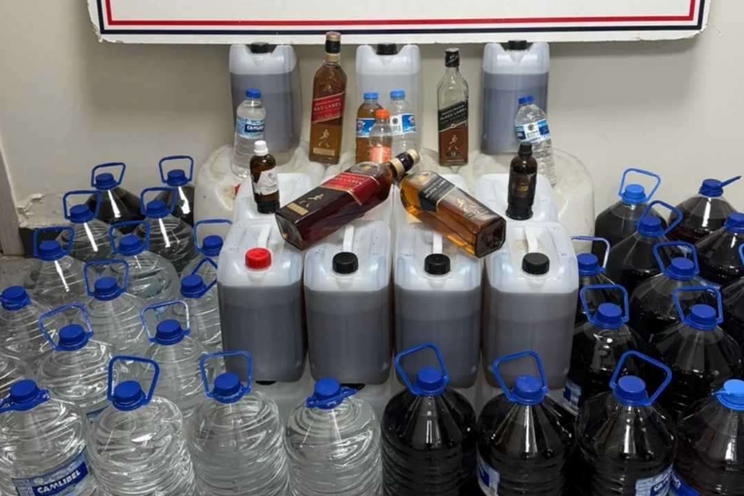 Adreste yapılan aramada, 410 litre kaçak içki, 80 litre etil alkol, 4 şişe bandrolsüz içki, 60 mililitre içki yapım kiti, 1 kurusıkı tabanca, 630 mermi ve 36 paket kaçak sigara ele geçirildi.