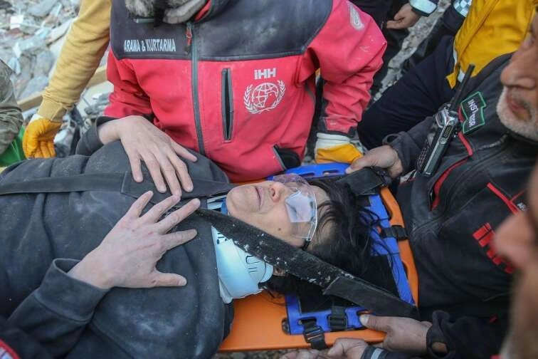 Kılınç çifti enkazdan çıkarılıp sedye ile ambulansa götürülürken çevredekilere el salladı. Çift, daha sonra ambulanslarla hastaneye götürüldü.