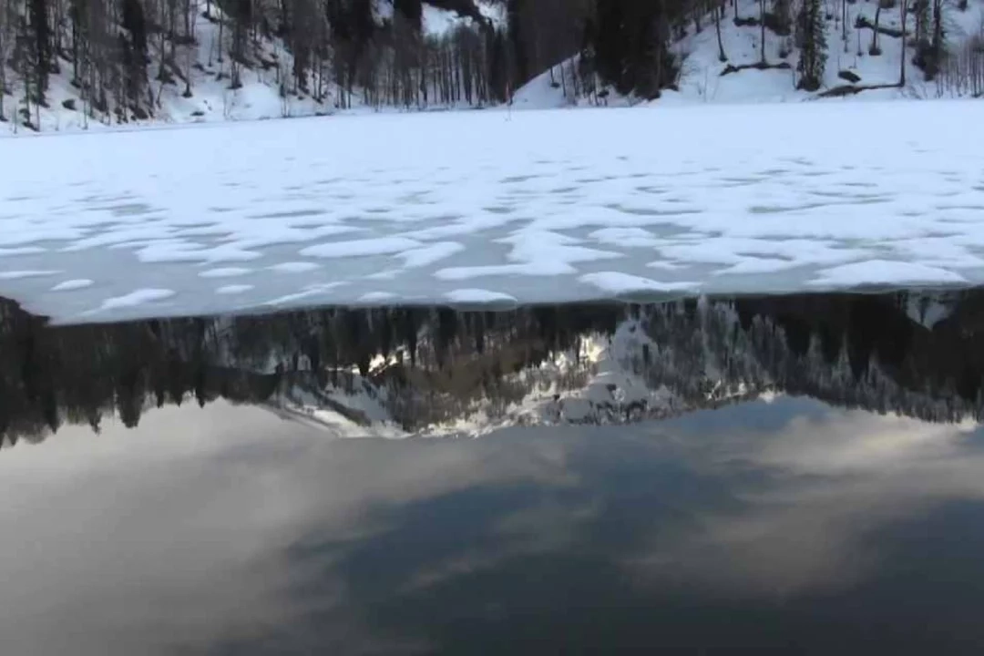 Donan göl yüzeyi ve ormanları kaplayan kar örtüsüyle seyrine doyumsuz manzaralar oluştu. Buz tutan gölü ziyaret edenler manzaranın keyfini çıkardı. Göl ve çevresi dronla görüntülendi.