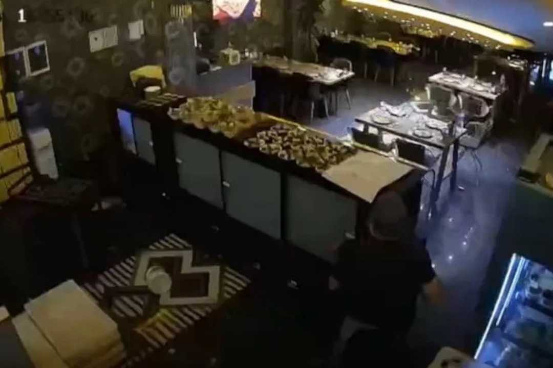 Görüntülerde; personelin mutfak ve salon kısmında çalıştığı esnada tavanın bir anda aşağı indiği, çalışanların ise güvenli yerlere kaçıştığı görülüyor.