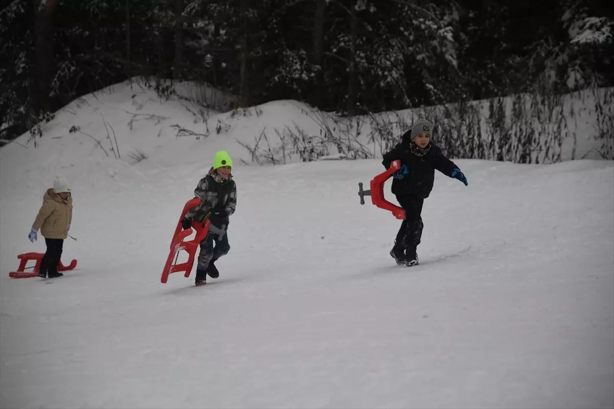 Ailesiyle gelen Demir Mahmutoğlu ise çok eğlendiğini belirterek, "Kaymak çok güzel, kar topu savaşı yapmak çok eğlenceli. Çıkarken biraz yoruluyoruz ama kızakla kayarken çok eğleniyoruz." ifadesini kullandı.