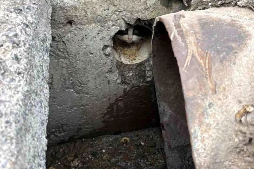 Hatay'ın İskenderun ilçesinde rögar borusuna düşerek mahsur kalan yavru kediler ekiplerin çalışmasıyla kurtarıldı.