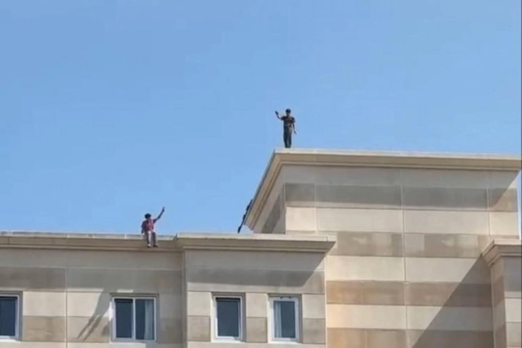 Öğrenci yurdunun çatısına çıkan iki genç, tehlikeli hareketlerde bulundu.