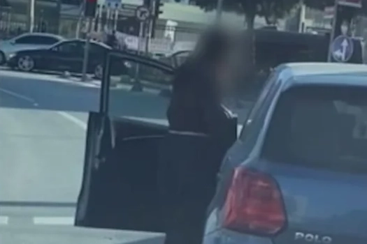 Bu sırada arkasından gelen otomobilin sürücüsüne el hareketi yapan sürücü, ardından aracından inerek otomobilin camına vurup, sürücüsünü de tehdit etti.