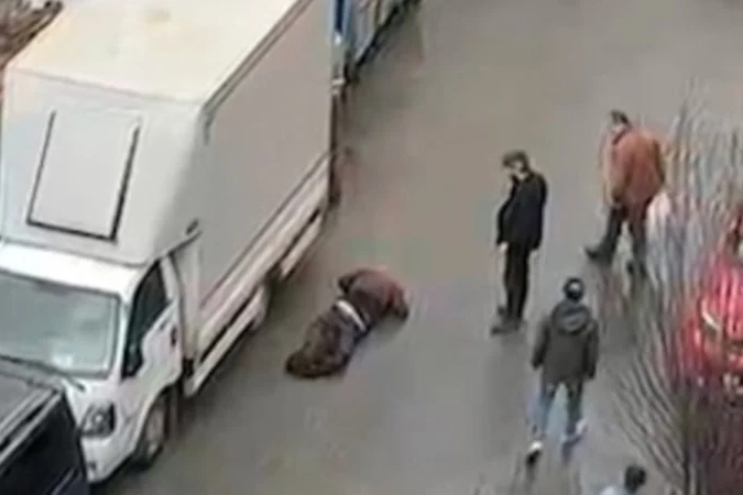 Yerde hareketsiz kalan yaşlı adamın bir süre sürüklendiği anlar da kayıtlara geçti.