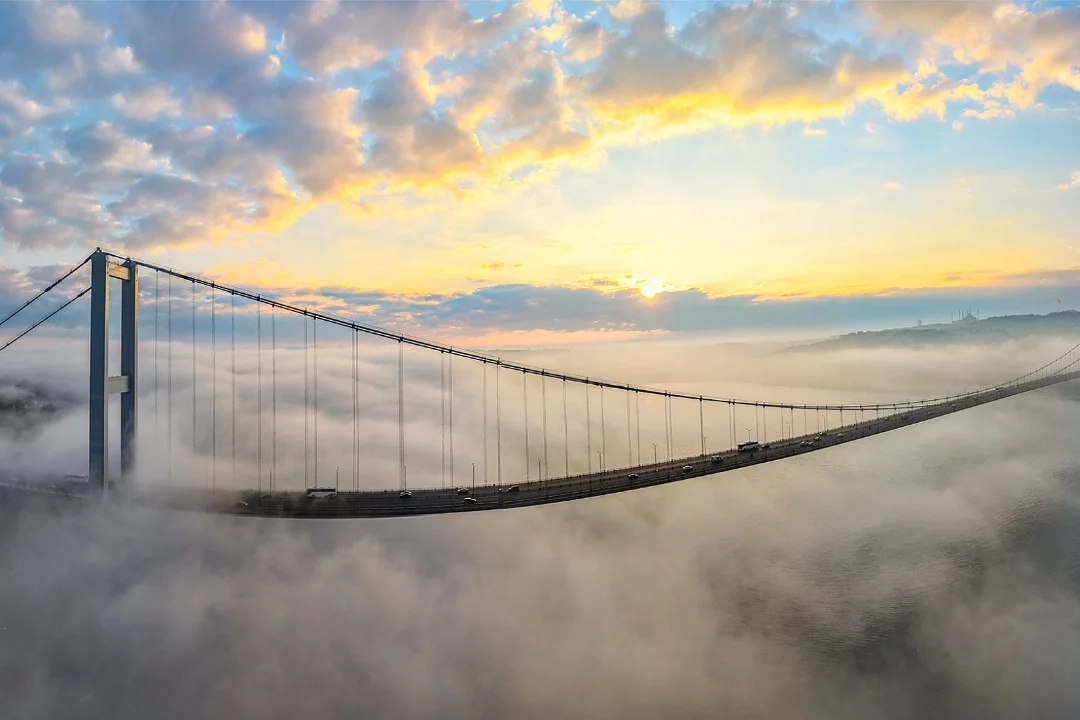 Sis nedeniyle görüş mesafesinin düşmesiyle birlikte İstanbul Boğazı'nda gemi trafiği kapandı. Sis bulutlarının arasından süzülen gün ışığıyla ortaya çıkan manzara İstanbul siluetine farklı bir atmosfer kazandırdı.