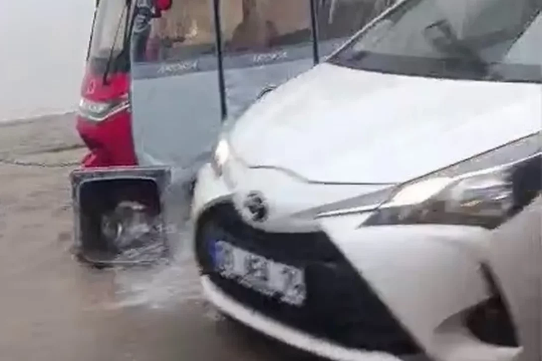 Ana arterler ve ara sokaklarda biriken sular nedeniyle araçlar ilerlemekte güçlük çekerken, vatandaşlar yağmurdan korunmaya çalıştı.