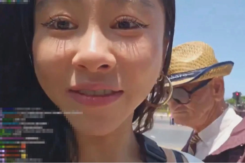 Park'ın canlı yayınında, genç kadının kendisini taciz eden yaşlı adamdan uzaklaştıktan sonra koşarak kaçtığı anlar görüldü.