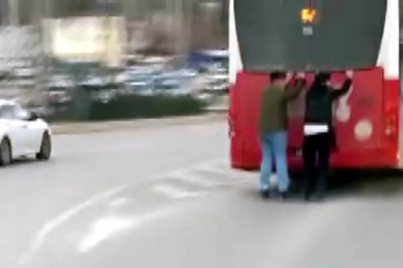Dün Azerbaycan Bulvarı’nda meydana gelen olayda patenli 2 çocuk, Kahramanmaraş Büyükşehir Belediyesi’ne ait halk otobüsünün arkasına tutunarak yolculuk etti.