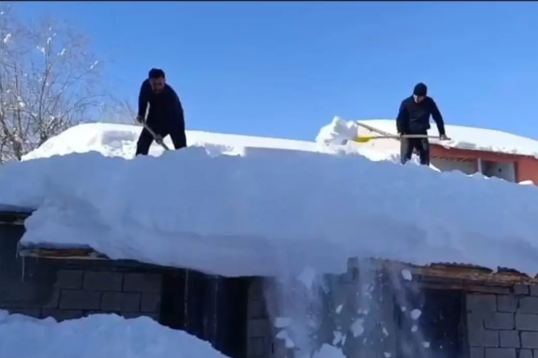 HAKKARİ'de kar kalınlığının 2 metreye aştığı 2 bin 44 rakımlı Boybeyi köyünde yaşayanlar, birbirlerine yardım ederek evlerin çatılarındaki karları temizledi.