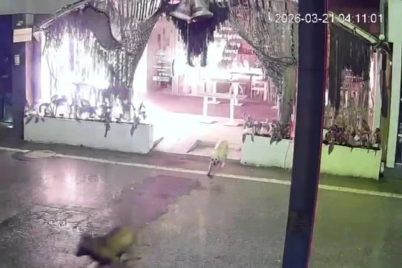 Görüntüde; şüphelinin kafeyi ateşe verip kaçtığı, alevlerin kısa sürede büyüdüğü, iki köpeğin koşarak dışarı çıktığı anlar yer aldı.