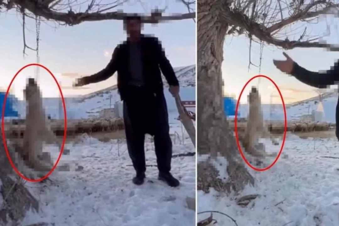 Pınarbaşı ilçesinde kimliği henüz öğrenilemeyen bir kişi, çok fazla yediğini iddia ettiği köpeğini ağaca asarak öldürdü. Köpeği asılı halde gören bir kişi, cep telefonuyla kayda almaya başladı.
