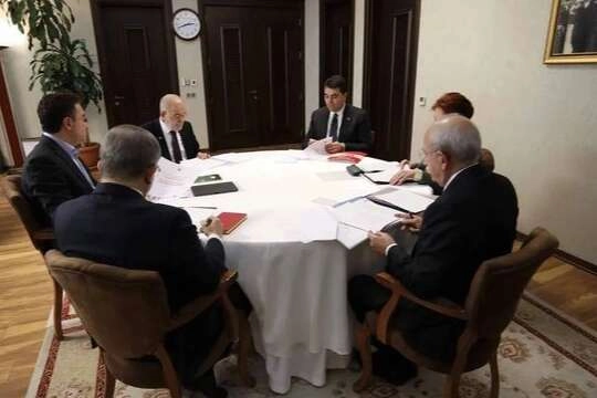 Gözlerin çevrildiği 6'lı masanın ikinci tur kapsamındaki son toplantısı, Ankara'da Saadet Partisi Genel Merkezi'nde yapılıyor.
