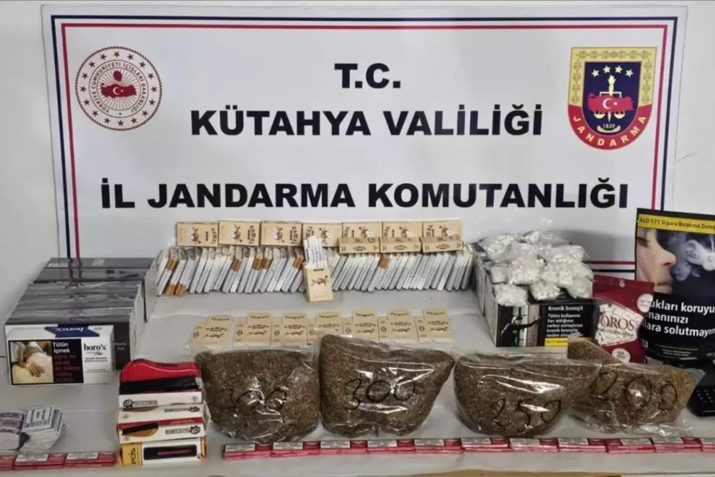 İl Jandarma Komutanlığı unsurlarınca il genelinde kaçakçılık suçlarıyla mücadele kapsamında yürütülen çalışmalar çerçevesinde, Şaphane ilçesinde şüphe üzerine durdurulan araçta arama yapıldı. Yapılan aramada, bin 100 adet içi doldurulmuş bandrolsüz makaron, 2 bin 200 adet içi boş bandrolsüz makaron, 900 adet bandrolsüz filtre, bin 590 adet bandrolsüz sigara kağıdı, 5 adet tütün doldurma makinesi ve 1 kilo 250 gram kıyılmış bandrolsüz tütün ele geçirildi.