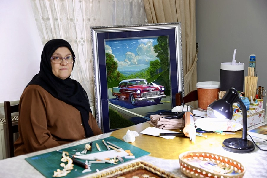 Halk Eğitimi Merkezinin açtığı "rölyef tekniğiyle tablo yapma kursu"na katılan 64 yaşındaki Satıroğlu, çevresinin ve yakınlarının da desteğiyle kısa sürede kendisini geliştirdi.