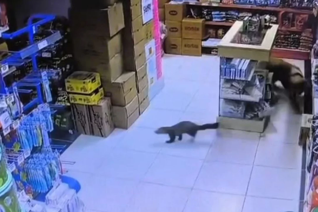 Malatya'nın Yeşilyurt ilçesinde bir markete giren sansar, görüntülendi.