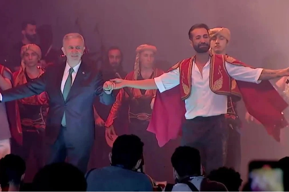 Sahneye çıkan Mansur Yavaş, Tan Taşçı ile birlikte karşılıkla Ankara havası oynamıştı.