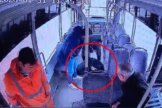 Görüntülerde, Veysi Y.'nin nöbet geçirerek koltuktan yere yığıldığı ve diğer yolcuların müdahale ettiği anlar yer aldı.