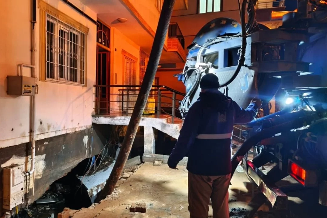 Mardin Valisi ve Büyükşehir Belediye Başkan Vekili Tuncay Akkoyun'un talimatları doğrultusunda 24 saat esasına göre çalışan ekipler, su baskınlarının yaşandığı noktalarda yağmur sularını tahliye etti.