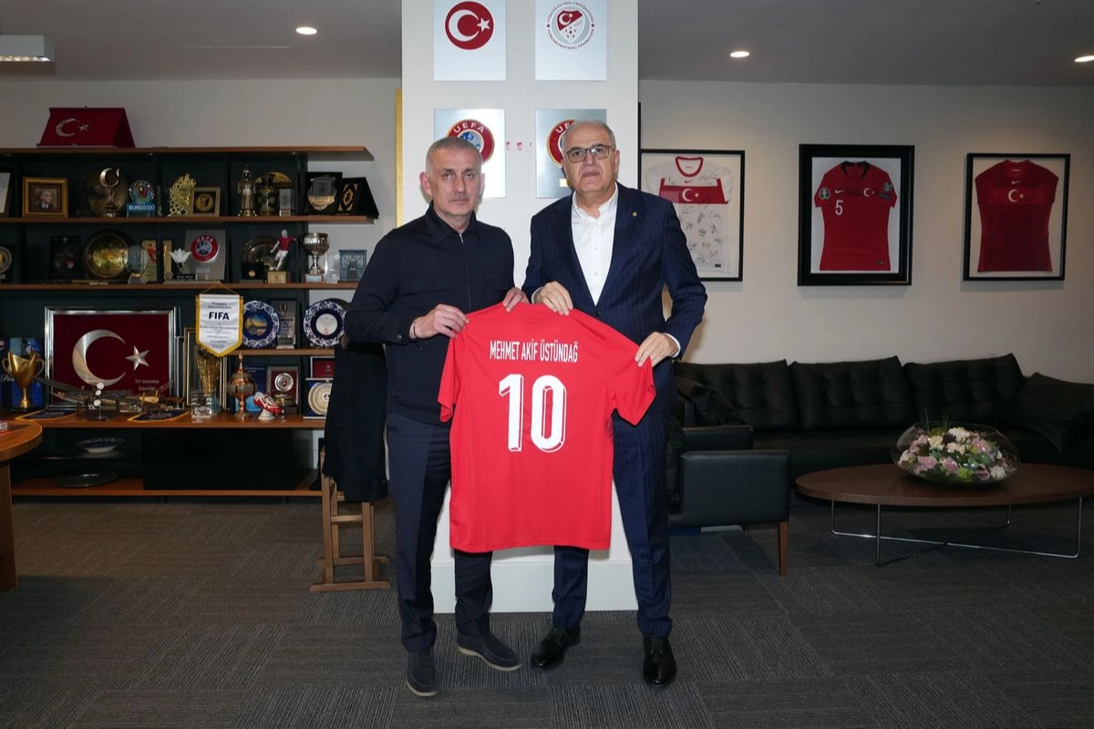 Riva Hasan Doğan Milli Takımlar Kamp ve Eğitim Tesisleri'nde gerçekleşen görüşmenin sonunda TFF Başkanı Hacıosmanoğlu, Mehmet Akif Üstündağ'a üzerinde isminin yazılı olduğu bir A Milli Takım forması hediye ederken; Mehmet Akif Üstündağ da TFF Başkanı Hacıosmanoğlu'na bir kalem takdim etti.