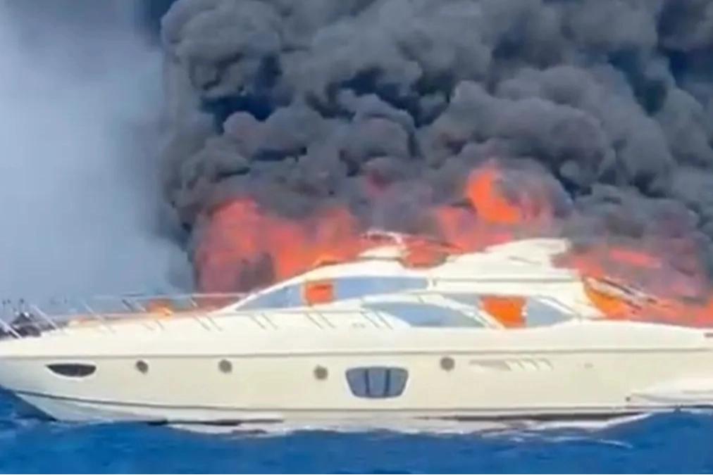 Tamamen yanan yat batarken, olayla ilgili soruşturma sürüyor.
