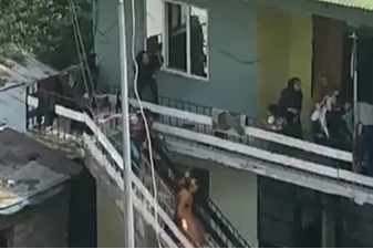 O anlar, başka bir binada yaşayanlar tarafından cep telefonu kamerasıyla kaydedildi.Görüntülerde, kavga sırasında bir kadının yumruk ve tekmelerle merdivenlerden aşağı indirildiği, bazılarının araya girerek kavgayı ayırmaya çalıştıkları anlar yer aldı.