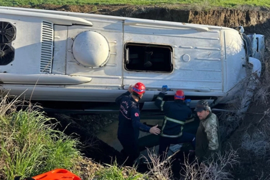 Öğrencileri taşıyan okul servisi, sürücünün direksiyon hakimiyetini kaybetmesi sonucu yol kenarındaki dereye düştü.
