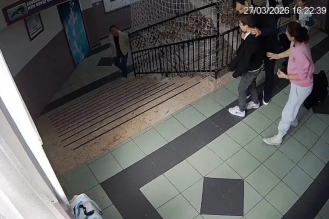 Yaşananlar, okulun güvenlik kamerasına yansıdı.