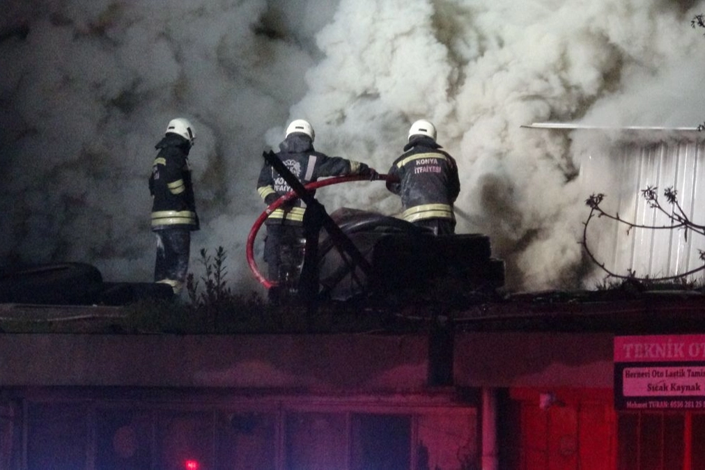 Yangın, saat 19.00 sıralarında merkez Selçuklu ilçesi Horozluhan Mahallesi Çatalçam Sokak üzerinde bulunan oto elektrikçi dükkanında çıktı. Elektrik kontağından çıktığı tahmin edilen yangında alevler, çatıda bulunan lastiklere sıçradı. Yangını gören esnafın ihbarı üzerine olay yerine polis, sağlık ve itfaiye ekipleri sevk edildi. Alevlerin sardığı iş yerinde bulunan elektronik malzemeler patladı. Küçük çaplı patlamaların yaşandığı yangında 1 iş yeri çalışanı ve 1 itfaiye görevlisi hafif yaralandı. Yaralılar, ambulanslarla Konya Numune Hastanesi'ne kaldırılarak, tedavi altına alındı. Yangın ise yaklaşık 2 saatlik müdahalenin ardından güçlükle söndürüldü.