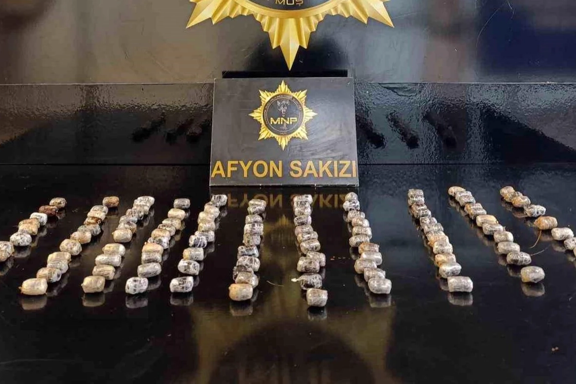 Muş İl Emniyet Müdürlüğü Narkotik Suçlarla Mücadele Şube Müdürlüğü ekiplerince yürütülen çalışmalar kapsamında, uygulama noktasında durdurulan bir yolcu otobüsünde uyuşturucu operasyonu gerçekleştirildi. Ekipler tarafından durdurulan otobüste bulunan yabancı uyruklu bir şahsın hareketlerinden şüphelenilmesi üzerine, şahıs kontrol altına alındı. Şüphelinin hastanede yapılan muayenesinde ve radyolojik görüntülemede midesinde yabancı cisimler tespit edildi. Yapılan tıbbi müdahaleler neticesinde 118 kapsül halinde toplam 804 gram afyon sakızı ele geçirildi. Uyuşturucu maddeye el konulurken, şüpheli şahıs gözaltına alındı. Emniyetteki işlemlerinin ardından adliyeye sevk edilen şüpheli, Türk Ceza Kanunu'nun 188'inci maddesi kapsamında çıkarıldığı mahkemece tutuklanarak cezaevine gönderildi.