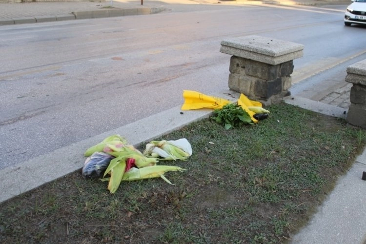 Geriye yola saçılan sebzeler kaldı