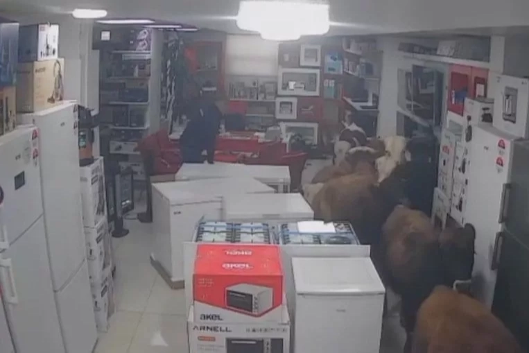 Mağaza içinde bir süre dolaşan hayvanlar, bazı beyaz eşyalara zarar verdi.
