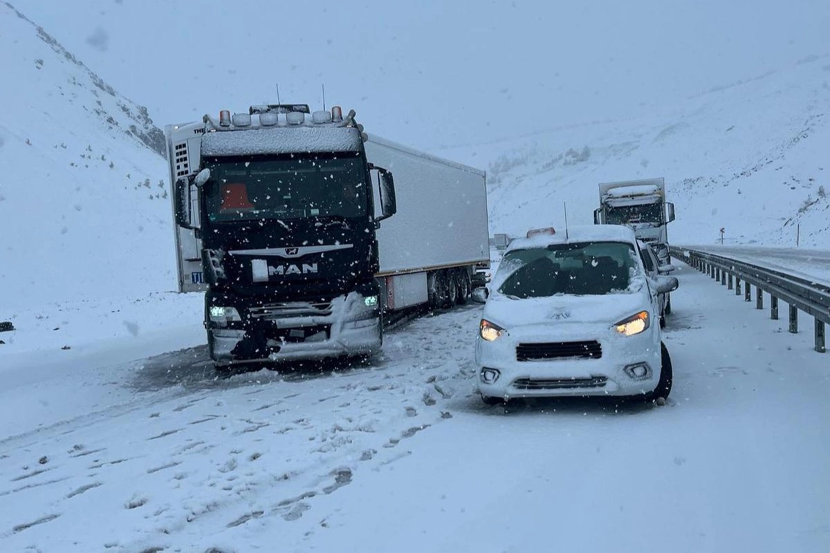 Sivas kara yolundaki 2160 metre rakımlı Sakaltutan Geçidi'nde kar ve tipi nedeniyle ulaşımda aksamalar yaşandı. Yolda uzun araç konvoyu oluştu.