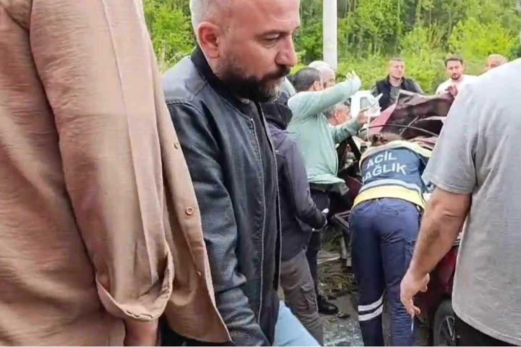 Kazada, bariyerin altına girip hurdaya dönen araçta sıkışan sürücü S.A. ile yanındaki S.G. yaralandı.