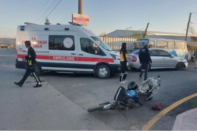 Servis aracının durmasını fırsat bilerek aracın sağından geçmeye çalışan yabancı uyruklu şahsın idaresindeki motosiklet, o esnada sokağa dönüş yapan otomobile çarptı.