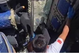 Olay yerine giden sağlık ekipleri, sürücüye ulaşmakta zorlanınca kamyonun tepesine çıkıp sürücü kabinine girdi.Yaralıyı çıkartmak için de sağlık görevlilerinden biri, camı kırmak zorunda kaldı.