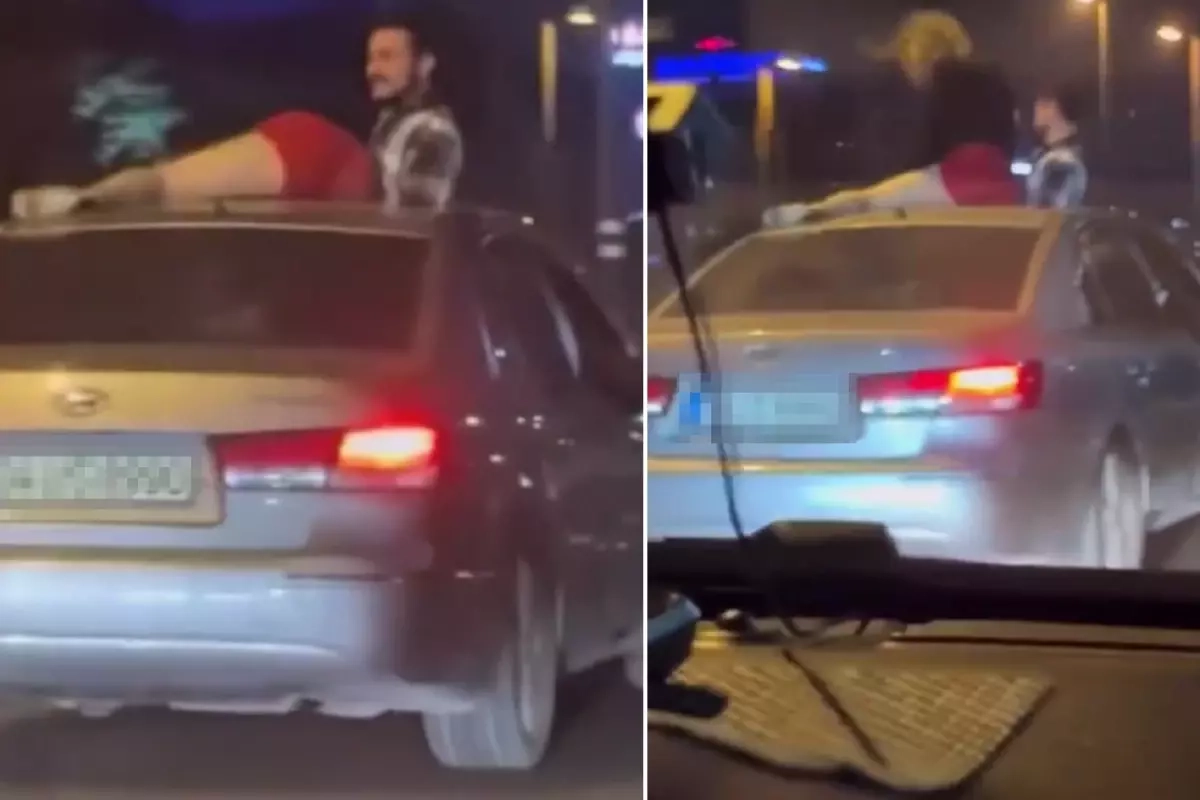 İstanbul'un Şişli ilçesinde akılalmaz bir olay yaşandı. Seyir halindeki bir otomobilin tavanına çıkan genç bir kadın, trafikte tehlikeye aldırış etmeden twerk yapmaya çalıştı. Araç içinde bulunan bir erkeğin eşlik ettiği anlar, çevredeki vatandaşlar tarafından cep telefonu kamerasıyla kaydedildi.