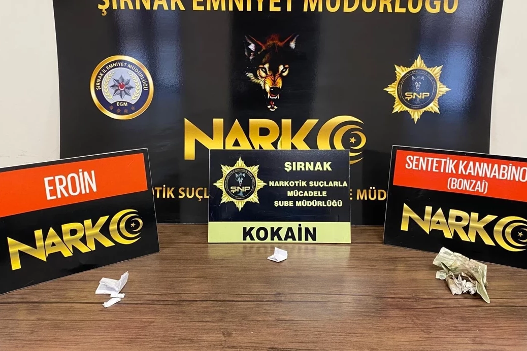 Melaye Ciziri Parkı mevkisinde şüphe üzerine durdurdukları L.A, D.T, B.V, Y.A. ve Y.E'nin üst aramasını yapan ekipler, 0,64 gram kokain, 4,25 gram bonzai ve 3,43 gram eroin ele geçirdi.