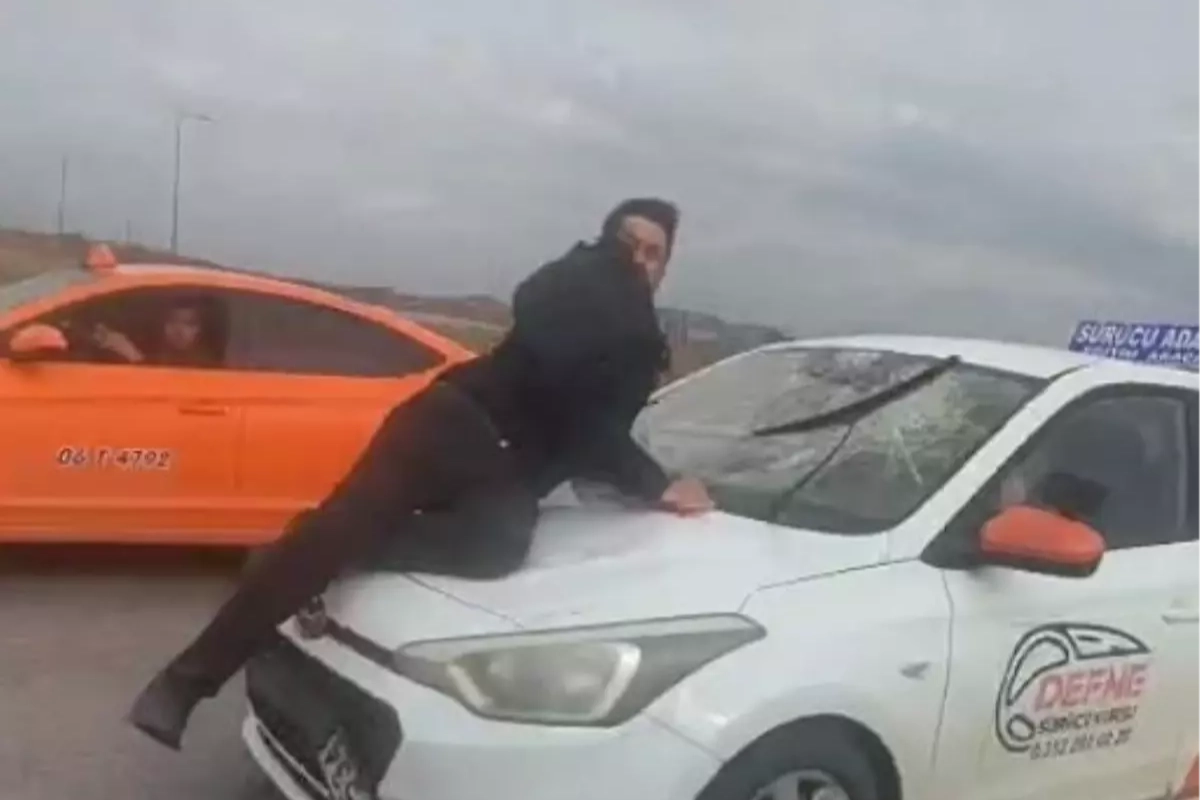 ANKARA'nın Etimesgut ilçesinde sürücü kursu eğitmeni C.Ö., trafikte aralarında çıkan tartışmanın ardından otomobilin kaputuna tutunan İ.Ç.'yi yaklaşık 20 kilometre sürükledi.