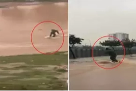 Su basan caddede vatandaşın sörf yapması, çevredekiler tarafından cep telefonu kamerasıyla kaydedildi. Kamera kaydında vatandaşın, su birikintisi üzerinde bir süre sörf yaptığı görüldü.