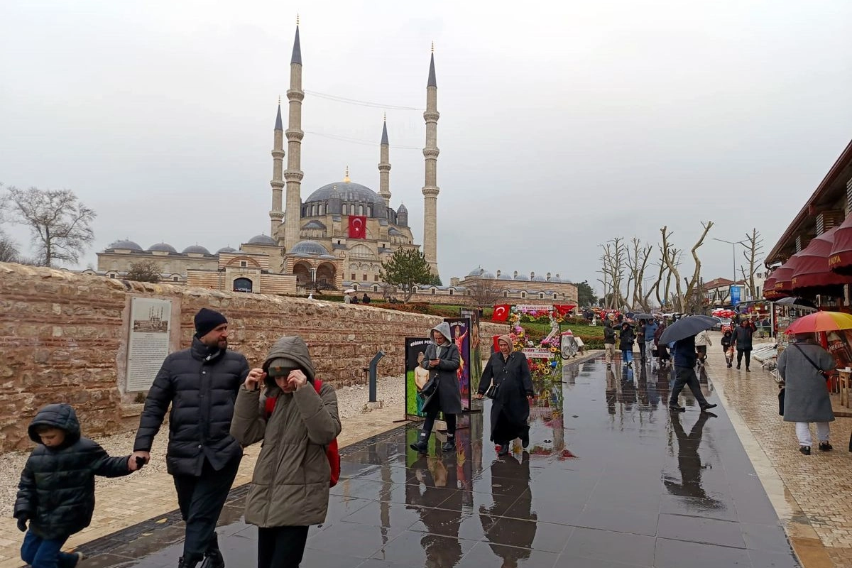 TARİH ve kültür kenti Edirne, Ramazan Bayramı'nda yurt içi ve yurt dışından gelen turistlerin akınına uğradı. Yağışlı havaya rağmen gelen turistler, Selimiye Camii başta olmak üzere tarihi mekanları gezerken, meşhur Edirne tava ciğeri yemek için işletmelerin önünde uzun kuyruklar oluşturdu.