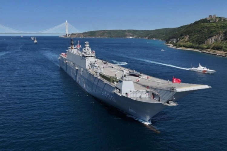 Yavuz Sultan Selim Köprüsü'nden başlayan geçişte TCG Anadolu'ya Savarona yatı ve 7 gemi eşlik etti. Geçit töreninde gemiler, Sarıyer, Tarabya, Emirgan, Kanlıca, Rumeli Hisarı, Kandilli, Bebek ve Ortaköy güzergahından ilerleyerek 15 Temmuz Şehitler Köprüsü altından geçiş yaptı.Anadolu Ajansı (AA) Yönetim Kurulu Başkanı ve Genel Müdürü Serdar Karagöz, Savunma Sanayii Başkanı Haluk Görgün ve Baykar Yönetim Kurulu Başkanı Selçuk Bayraktar'la birlikte TCG Anadolu gemisine gelerek, geçit törenine katıldı.Deniz Kuvvetleri Komutanı Oramiral Ercüment Tatlıoğlu'nun Karagöz, Görgün ve Bayraktar'a gemide bulunan tank ve mühimmatı tanıtmasının ardından heyet, TCG Anadolu'nun güvertesindeki TB3 Bayraktar ve Kızılema'yı da inceledi.Vatandaşların yoğun ilgi gösterdiği geçit, Dolmabahçe Sarayı önünde sona erdi. Tören, Cumhurbaşkanı Recep Tayyip Erdoğan ve eşi Emine Erdoğan'ın selamlamalarıyla tamamlandı.Geçit törenine, Gençlik ve Spor Bakanlığı ile Türkiye Teknoloji Takımı (T3) Vakfı tarafından belirlenen 250 öğrenci de TCG Anadolu'dan katıldı.