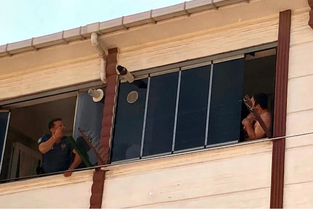 İtfaiye merdiveni ile pencereye yaklaşan polis, Tolgahan T.'yi ikna çabalarını sürdürdü.