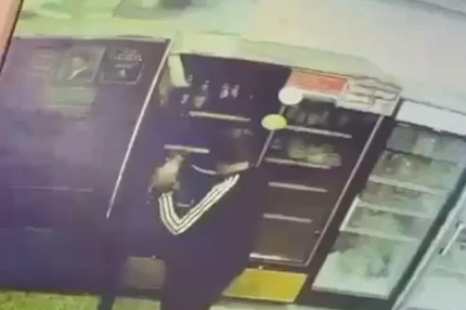 Şüphelinin içkileri alıp, iş yerinden çıktığı anlar güvenlik kamerasına yansıdı.