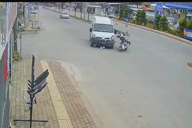 Kaza anı ise çevrede bulunan bir iş yerinin güvenlik kamerasına saniye saniye yansıdı. Görüntülerde; motosikletin yola çıkması ve panelvan ile çarpışması yer aldı.