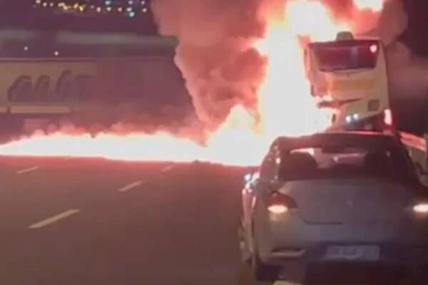 Öte yandan, çarpışma sonrası yolcu otobüsünün alev alev yanması da çevredekiler tarafından cep telefonu kamerasıyla kaydedildi. Kazayla ilgili başlatılan soruşturma sürdürülüyor.