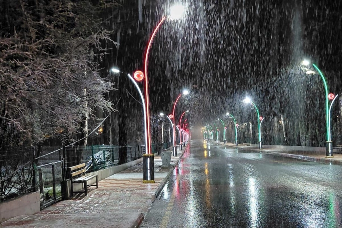 İlçe merkezinde de kar yağışı devam ediyor. Yüksek kesimlerde kar kalınlığı 10 santimetreye ulaştı.