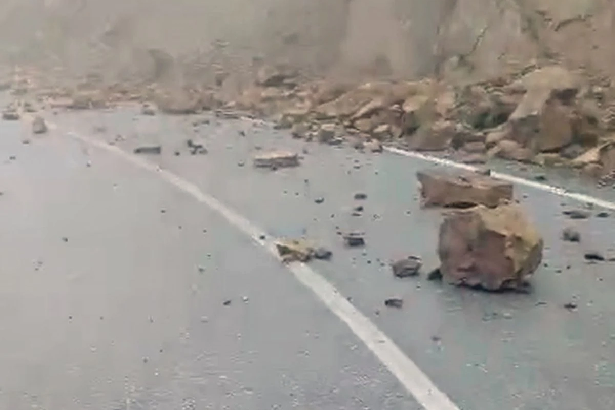 TOKAT'ta yağış sonrası kayalık zeminin yumuşaması nedeniyle Hacıköy–Cambalık köyü yoluna kaya parçaları yuvarlandı.