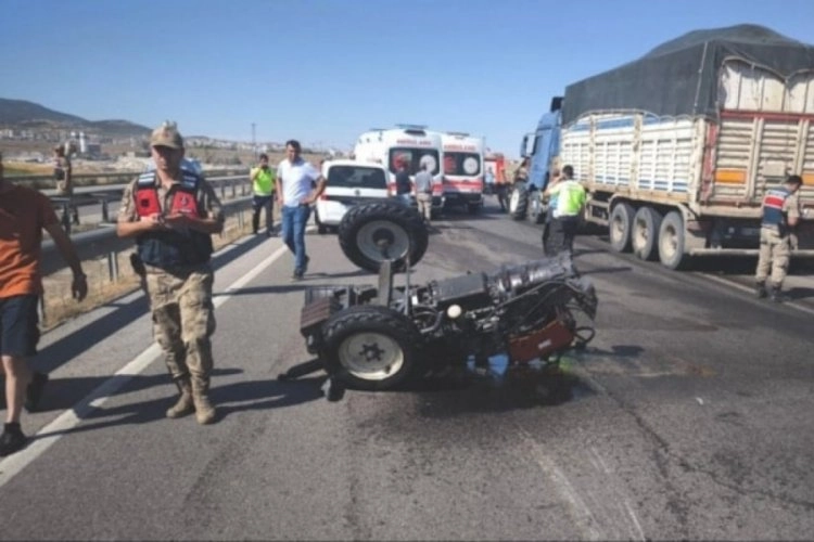 Gaziantep'in Nurdağı ilçesinde, TIR'ın çarptığı traktör ikiye bölündü. Kazada biri ağır 2 kişi yaralandı.