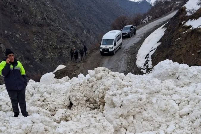 Çığ düşmesi sonucu yolun kapanmasıyla birlikte mahalle sakinleri zor anlar yaşadı.